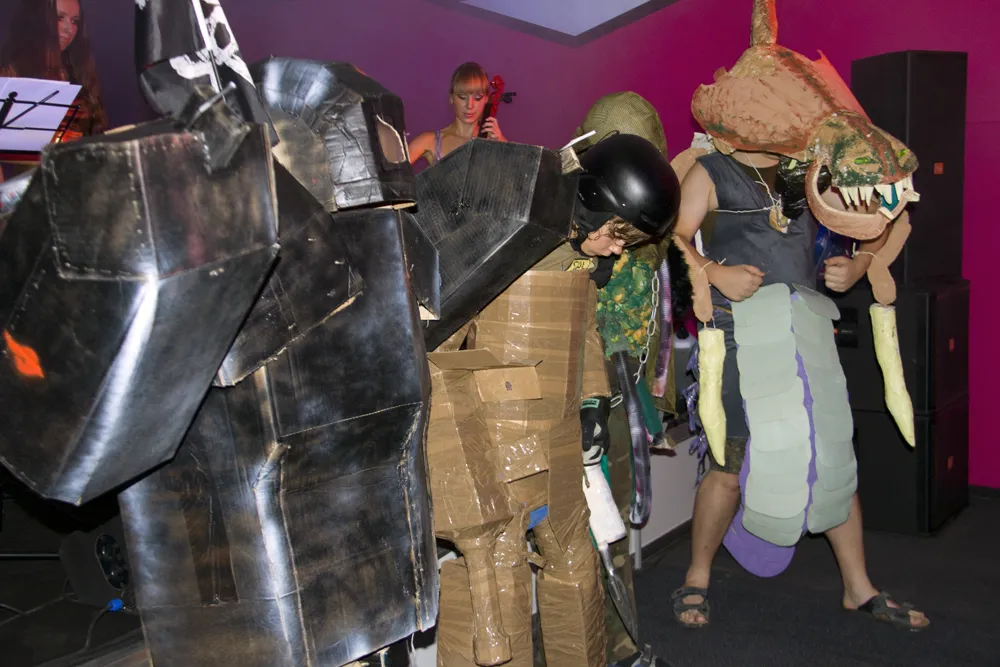 И вот настал наш выход, всего участников было пять, МарадёрФаирбат, Заражённый терран, Гидралиск и два, не понятно в чём парня. Один просто был обмотан картонном и скотчем, другой был с M16 и в камуфляже О_о.