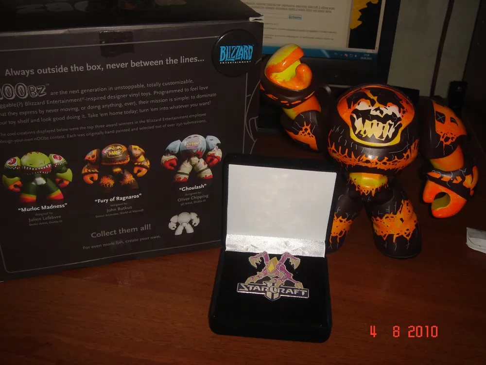 За первое и второе место зрительских симпатий, виедокарты nVidai 4xx модели и всем кто участвовал: Огненного голема, мозаику, значок StarCarft 2 с зергом и магнит на холодильник.