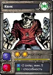 Карта универсальна: можно пробить и отравить, можно напугать, можно уже на втором ходу почти полностью лишить энергии противника, опрометчиво влившегося в первом раунде.