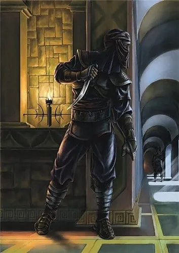 Метательные ножи в горло первым двум по бокам, пока не отошли от испуга. С помощью крюка кувыркнуться через центрального спереди. Оказаться в центре, рядом с Карлом. Вытаскивая меч, рукояткой оглушить сзади стоящего стражника в лоб. Сделать выпад и пронзить впереди стоящего. Ну а дальше чистая импровизация.