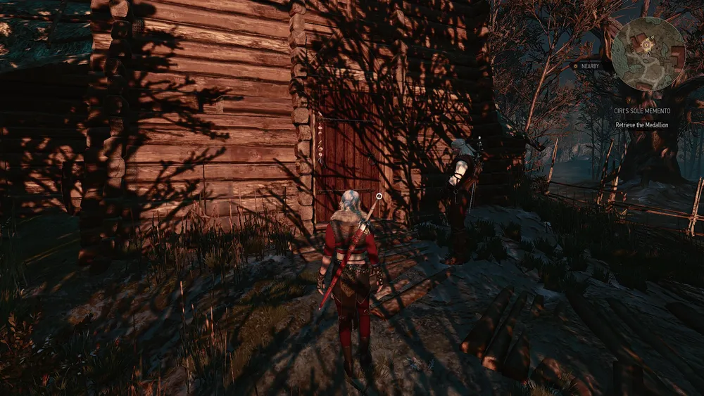 Идём на самый верх к Цири. Цири предлагает закрыть гештальт и добить врага, недобитого ею по сюжету - третью ведьму на болотах, а также забрать медальон Весемира, который та у неё похитила. Выбор в диалогах оформлен так же, как и в оригинальной игре: