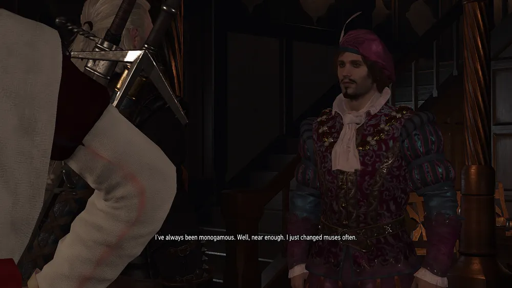 Парень рассказывает, что его отец ушёл на войну и не вернулся, мать зарабатывала очень мало, и он хотел стать богатым и знаменитым. Однажды в его деревню пришла красивая девушка и сказала, что может помочь. Но в обмен ей нужна его помощь в убийстве белого волка Персекйожа (Эмгыр, ты ли это). Парень хотел было отказаться, потому что он не был охотником, но она сказала что даст ему силу 20 человек, если он согласится на проведение ритуала. Он согласился. Через три дня, в ночь полнолуния она дала ему зелье и сказала выпить. Он выпил и почувствовал ужасную боль, а затем превратился в полуволка. Затем красавица приобрела свою настоящую форму страшной женщины, вокруг которой летали мухи. Она приказала ему слушаться её, или она убьёт его, а затем велела ему убить его мать, иначе она убьёт её очень болезненно. На следующий день после этого он проснулся в пещере человеком, весь день испытывал боль; заснув, он видел страшные сны, а проснулся с окровавленными руками и увидел рядом окровавленный труп. Это была его работа. Порывшись в его вещах, он выяснил, что это был скорее всего странствующий купец. Во что же он превратился, горестно спрашивает парень.