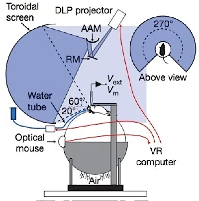 Как известно, магнитно-резонансное сканирование позволяло сканировать мозг только в статичном положении. Поэтому учёным пришлось изобрести специальную конструкцию. На мышь одели шлем и жёстко закрепили его, так что голова мыши оставалась неподвижной, а всё остальное тело могло при этом активно двигаться. Для симуляции передвижения мышь поставили на подвижный шар, так что она смогла бегать и поворачивать по коридорам. Движения с шара снималось сенсорами обычной компьютерной мышки.