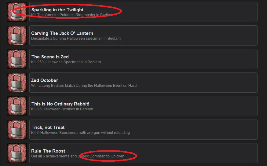 Я отметил две важные вещи в этом списке. Ачивмент Сверкающие Сумерки. Одну из героинь сериала зовут Твайлайт Спаркл. Дальнейшие обьяснения не требуються. Костюм курицы мне сразу навеял на вот это: