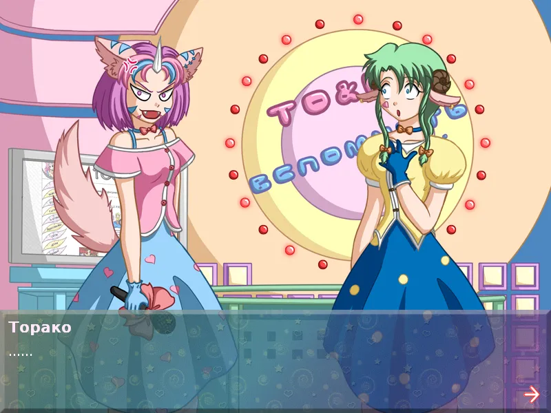 Викторина с элементами визуальной новеллы по авторскому комиксу TO&HI (входит в игру). Множество вариантов прохождения, концовок, призов и общение с "добрыми" героинями!