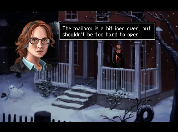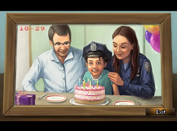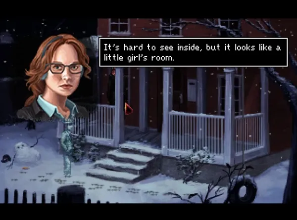 Вам обязательно надо попытаться забрать её, сказав «Come with me» и «I’m going to take you to your Dad». А также услышать, что отец берёт её к себе на работу в Abacus. Возвращайтесь в коридор и посмотрите детский рисунок на холодильнике.