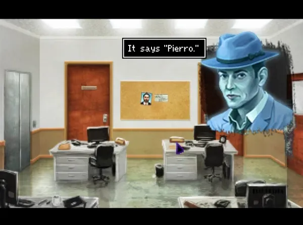 Переключайтесь на Джоуи и снова залетайте в участок. Снова пролетайте холл и в основном помещении осмотрите столы. На одном из них табличка с надписью Pierro – это рабочий стол Лийи.