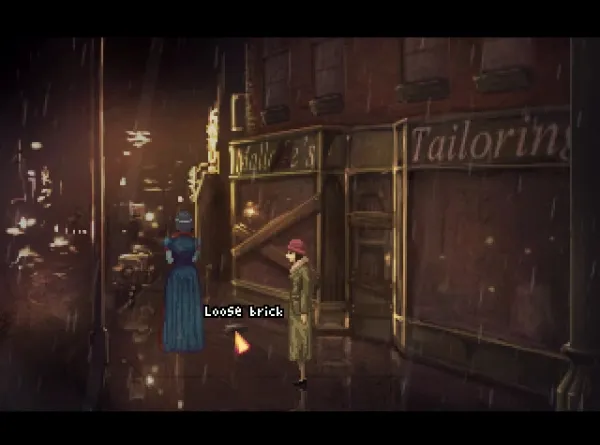 Переключайтесь на Розу. Осмотрите кирпичную стену — вы увидите на ней те же слова. Кликните на том, которое было подчёркнуто на граффити. Роза скажет, что кирпич примёрз. Берите из инвентаря кофе и используйте на кирпиче. Кликните на нём, затем берите ключ из открывшейся ниши. Используйте ключ на двери и входите.