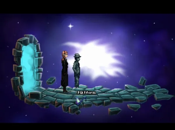 Из текущей «области» есть два выхода — один, откуда вы пришли, другой чуть правее. Пока Роза сидит виден только второй (и если навести на него курсор, появится надпись Exit). Кликните на него, чтобы встать. Потом ещё раз, чтобы пройти на другую сторону.