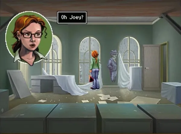 Всё начинается с «рутинной» отправки призрака в мир иной. Она же — туториал. Сперва вам нужно переключиться с Розанжелы на Джоуи (большая буква J под «инвентарём» или клавиша Tab). После чего кликните на двери, чтобы Джоуи пролетел сквозь неё.