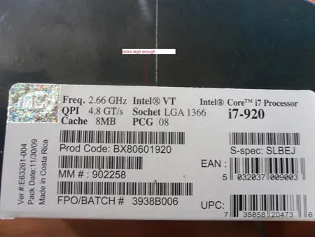 Паника!!!=) Некоторым покупателям Intel Core i7-920 достались нелегально изготовленные муляжи процессоров