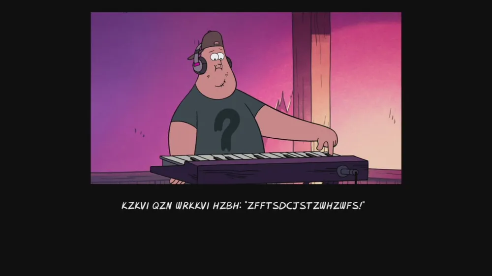 Наверное, вы могли заметить тот несвязный буквенный бред в титрах в самом конце... так вот, это не бред... это... мда... зашифрованные послания. Так в конце заставки звучит неразборчиво звучащий шепот. Если проиграть этот момент в обратном направлении, можно услышать фразу “Three letters back” ("На 3 буквы назад"), которая является своеобразным ключом к другим зашифрованным посланиям в сериале. Этот ключ — ни что иное, как отсылка к Шифру Цезаря, простому способу зашифровать послание, заменяя его буквы идущими впереди или сзади от исходной буквы в алфавите. В данном случае — на три назад (Ваш Кэп).