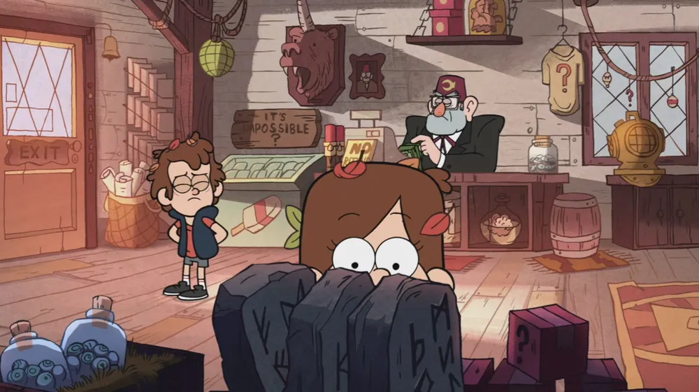 Но вернемся к... мультсериалу (не то чтоб мне он нравился, но...).В самом шоу создатели спрятали пару (СТЕН (Мужик с щетиной,роговыми очками и феской) является ... в шляпе ... поэтому, их убьют конец немного предсказуем, это же Дис... ) маленьких загадок для зрителя. Если не считать отсылок к другим работам, которыми вдохновлялись авторы, то в сериале полно так называемых Пасхалок.