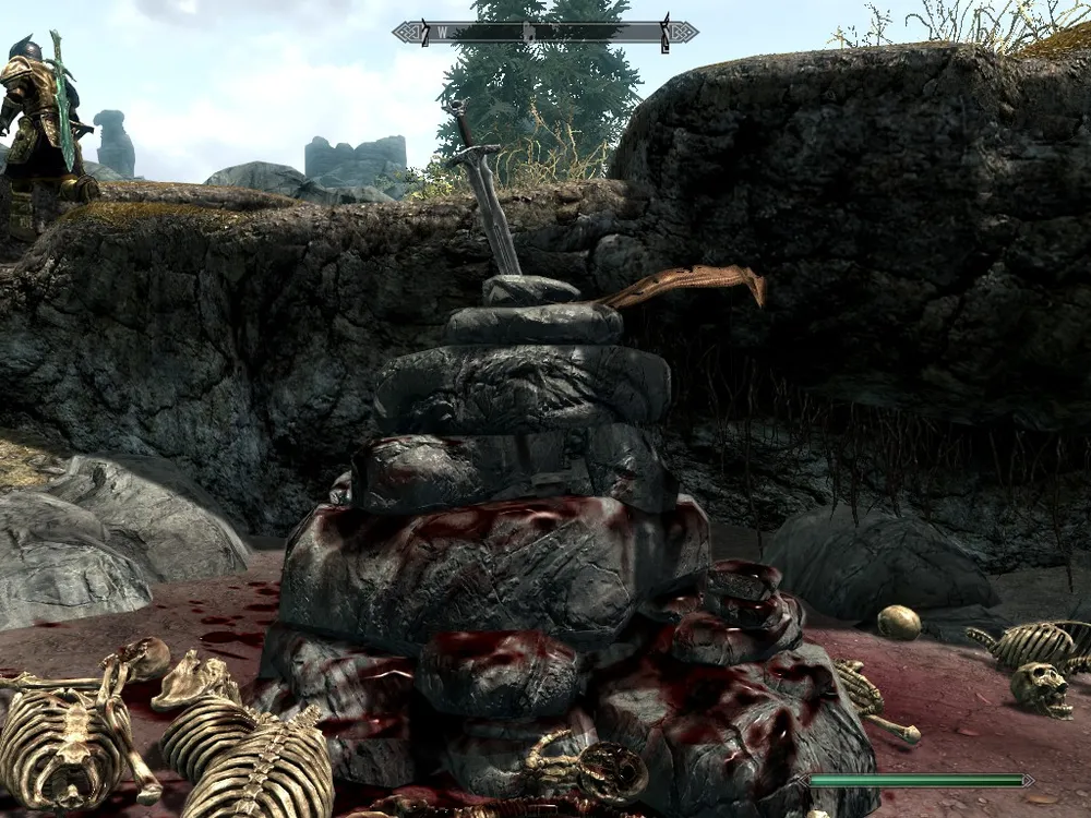 Есть местечко под названием Курган Повстанцев. Вы найдёте груду камней с мечом, воткнутым в неё сверху. Это отсылка к легенде о Мече в Камне.