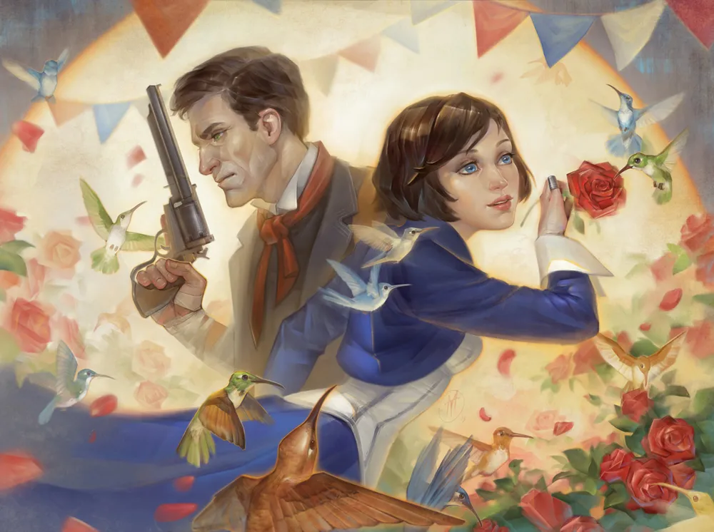 - В концовке, когда множество вариантов Элизабет топит Букера, можно заметить, что у центральной Элизабет отсутствует кулон с клеткой\птицой. Возможно, Элизабет в центре – вовсе не настоящая Элизабет, и Букер, кажется, это тоже понимает, ибо сопротивляется ее действиям, а до этого, в лодке, у Элизабет был кулон, противоположный тому, что вы выбрали...