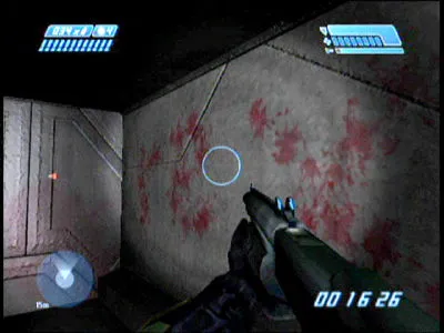 bridge of the Pillar of Autumn and see a red heart, created with blood,