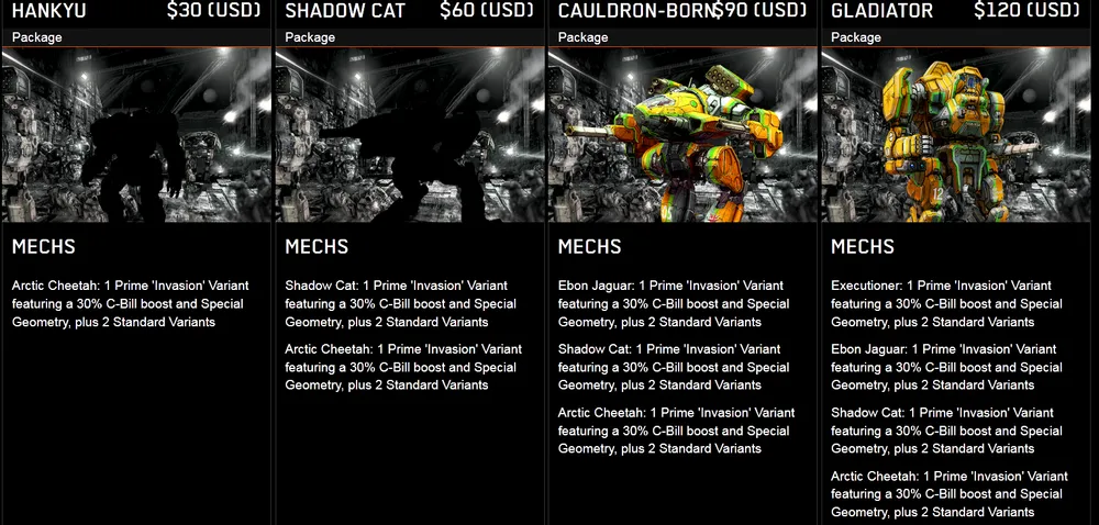 Мехи уже названы, но внешний облик представлен пока только для половины. Знающие люди радуются моделям Shadow Cat и Ebon Jaguar.