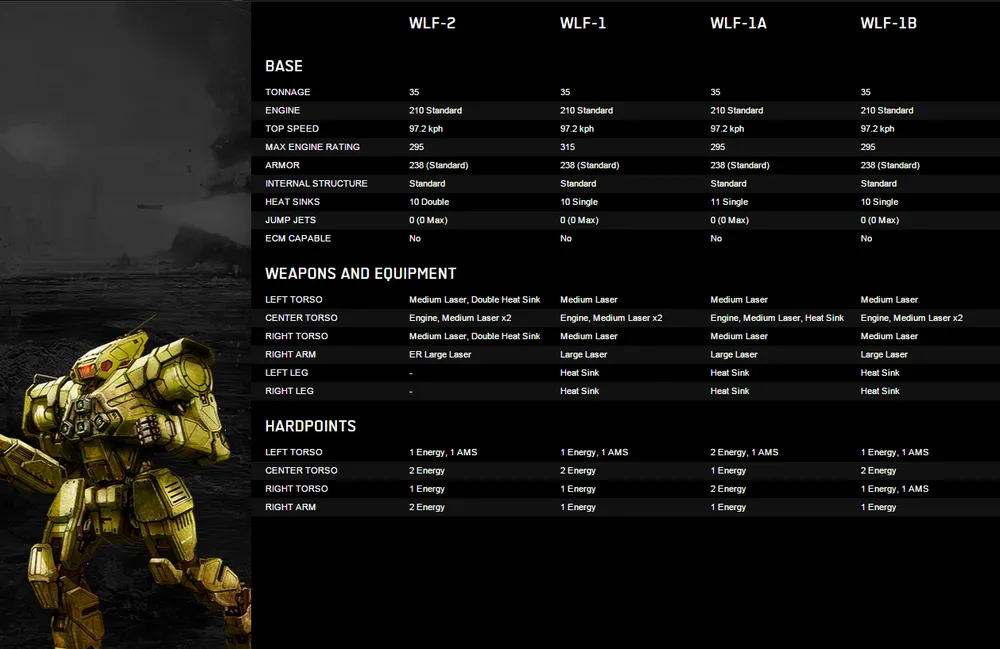 Лёгкий мех Лиранского Содружества, проектировался ТарХес Индастриз для борьбы с Пантерами и Дженнерами. Основными требованиями военных-заказчиков были надёжность, выносливость и скорость. В результате получился недорогой скоростной мех с полностью энергетическим вооружением и максимальной, для мехов своей весовой категории, бронёй. Первыми этот мех испытали Гончие Келла, вскоре после них он попал и к Волчьим Драгунам. Мех великолепно проявил себя во время Четвёртой войны за наследие, особенно это было заметно, когда он применялся по прямому назначению против Пантер и Дженнеров. После Четвёртой войны Лиранское Содружество заказало большую партию этих мехов для переоснащения своих вооружённых сил. Единственными недостатками меха оказалась слабая система охлаждения, не способная полностью справиться с 4 средними лазерами и одним большим, и отсутствие прыжковых двигателей. Следующее применение, во время войны 3039 года, сопровождалось серьёзными потерями в их рядах. Для восстановления численности лицензию пришлось передать в руки АркРоял МехВоркс. Новые модели, с применением данных ядра Хельма, были представлены в 3052 году, однако, из-за слишком долгого переоснащения завода, применить их на Токкайдо не удалось.