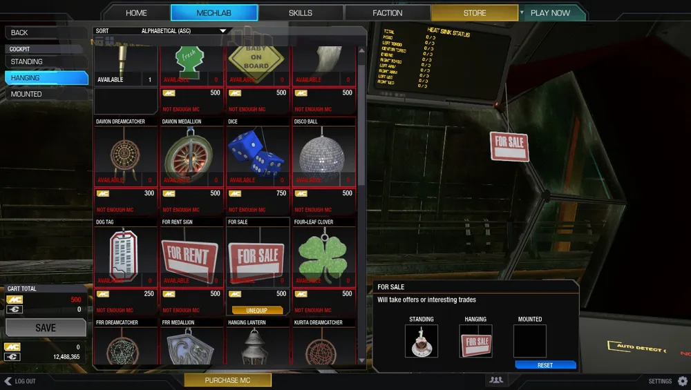 Подвески: светильник и вывеска "For Rent" стоимостью по 500 МС.