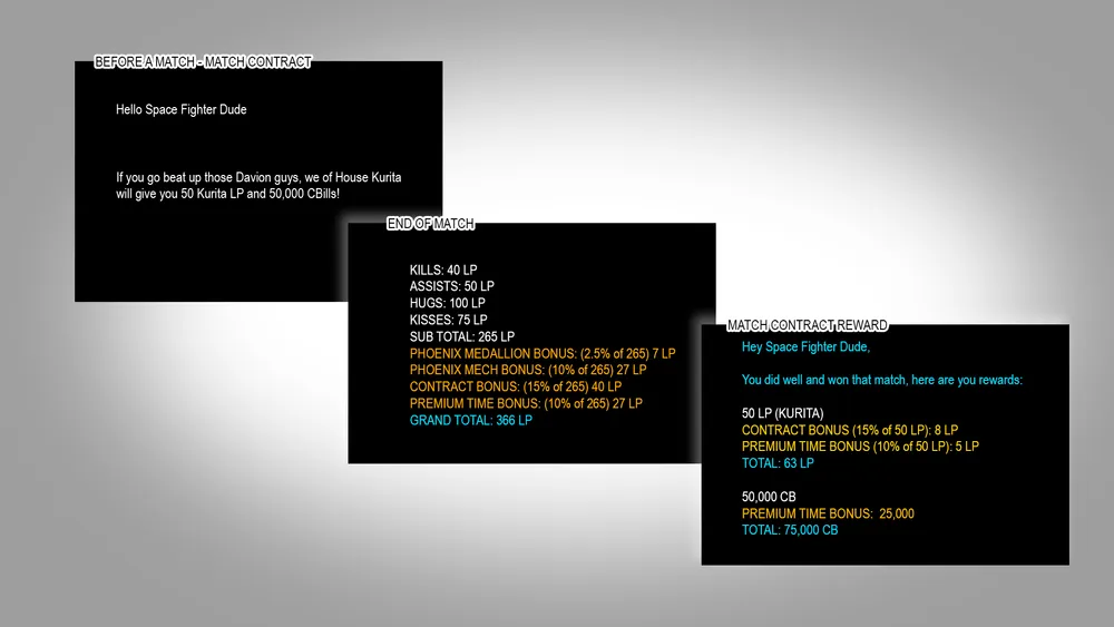 Есть два источника очков лояльности. Награда контракта за матч и награда за действия в матче.