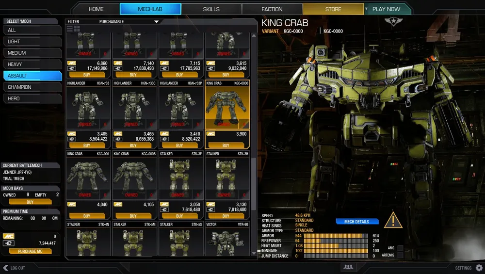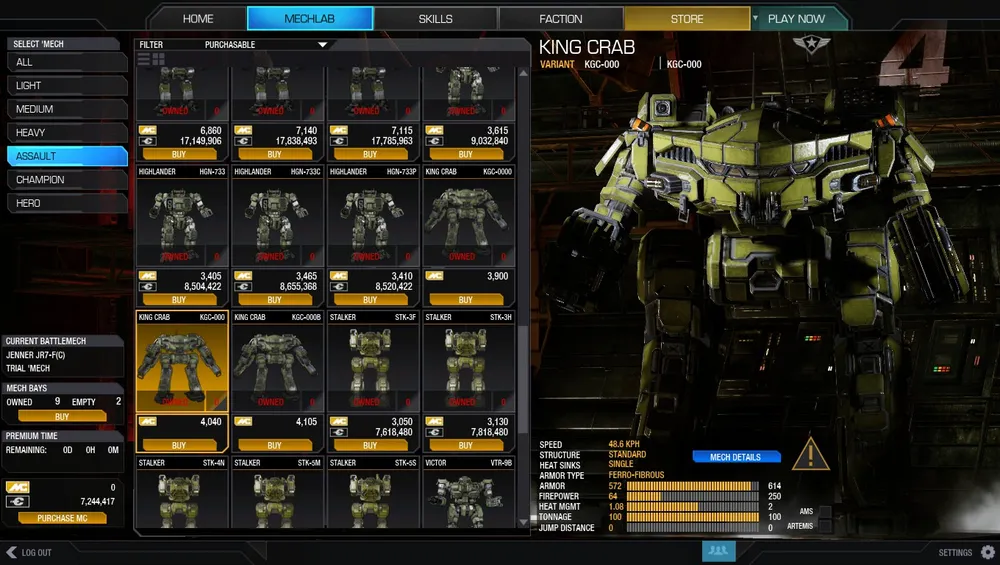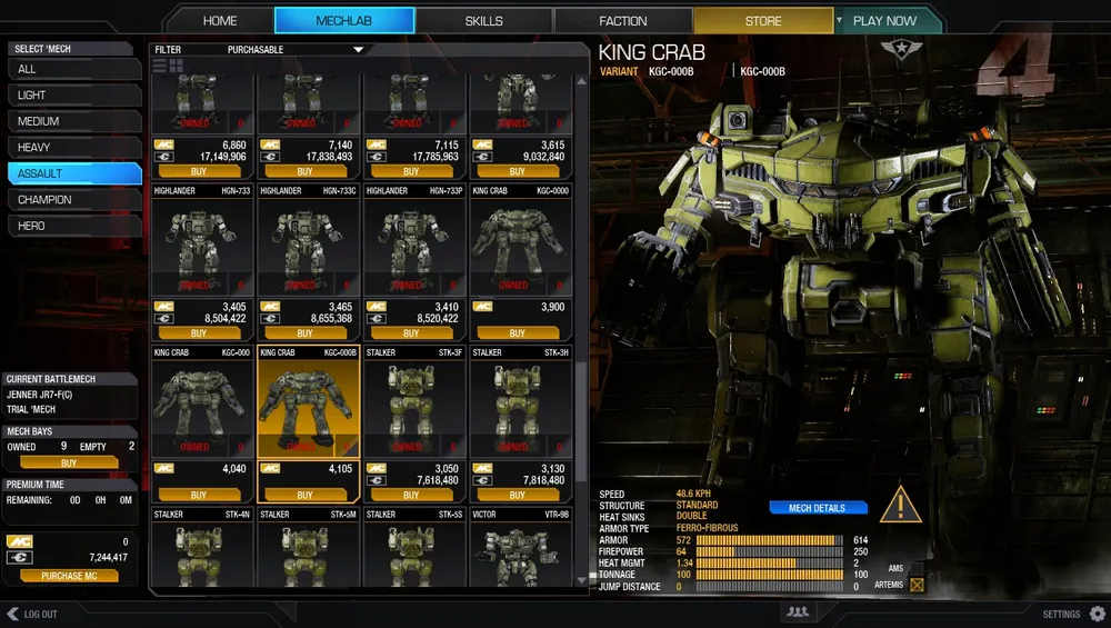 Поскольку разработчики немного сдвинули релиз контента,то решили заодно выпустить стандартные варианты King Crab и Gargoyle за МС. За C-Bills этих мехов можно будет покупать с 20 января.