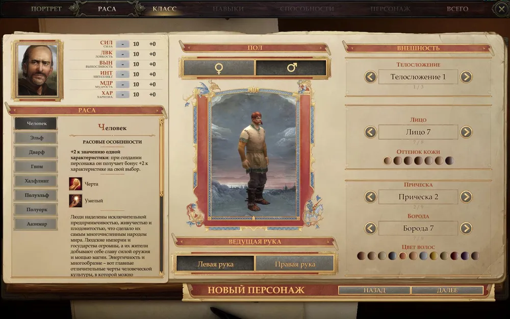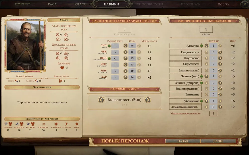 После этого можно выбирать навыки, такие как атлетика, плутовство, убеждение и другие.