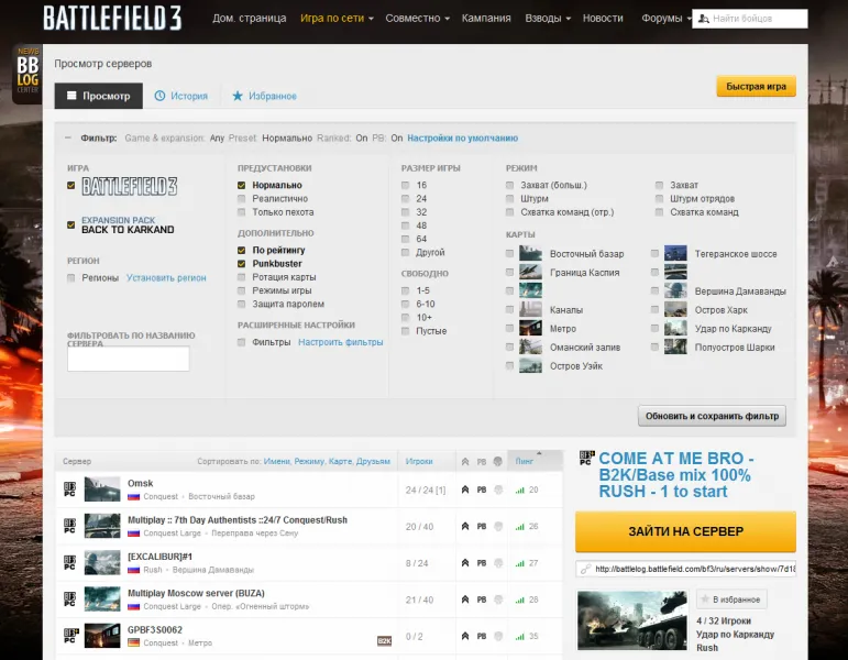 В интервью речь шла про Battlelog — ответ DICE внутри-игровому браузеру серверов. Он позволяет игрокам набирать друзей в отряды и выбирать сервер для игры. И все это при помощи любимого интернет-браузера. Как только человек сделал выбор, Battlefield 3 загружает сетевой матч и терпеливо ждет, пока его откроют.