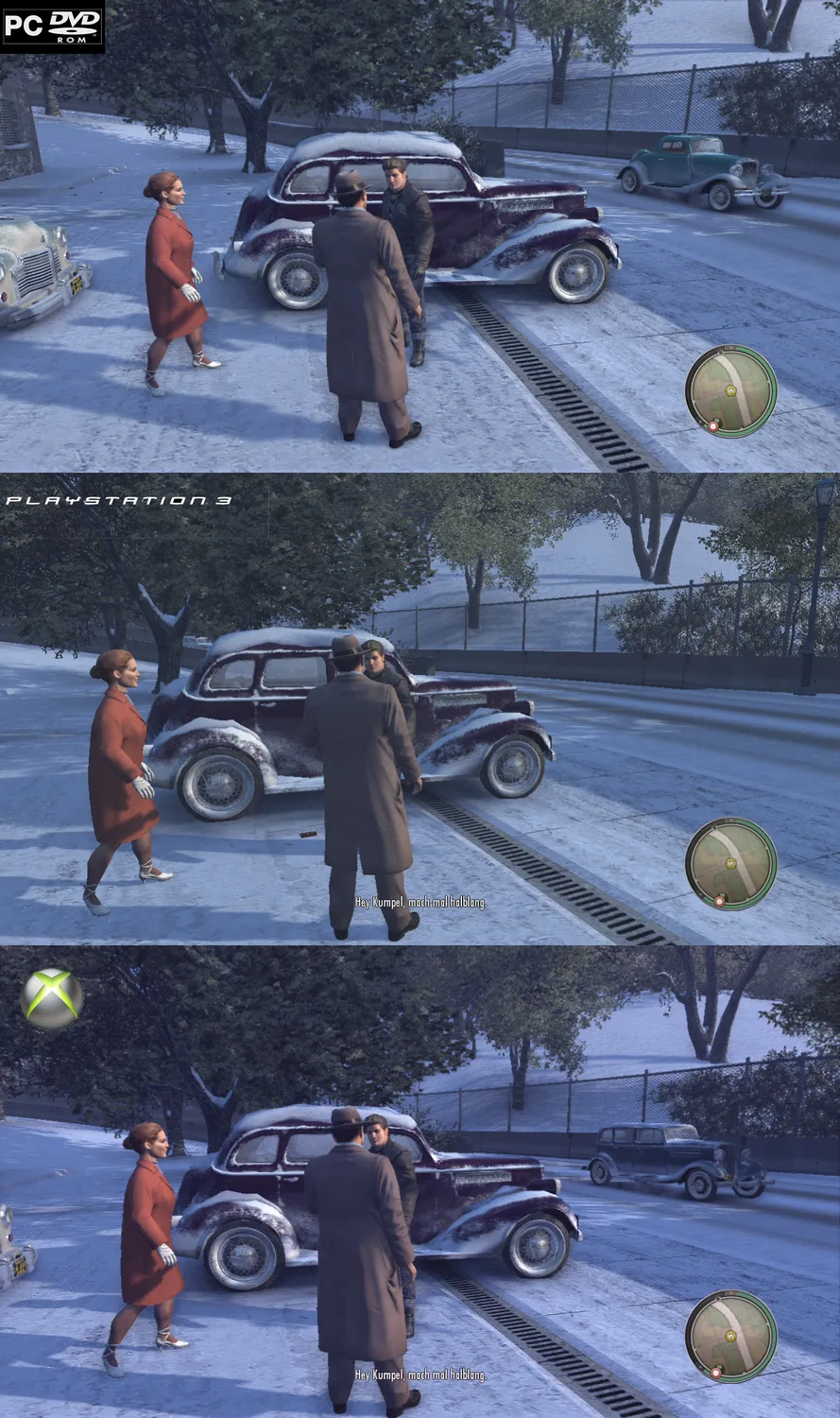 Сайт www.pcgames.de радует нас новой информацией о грядущей MAFIA 2и вот на очереди сравнение графики все 3 платформ: