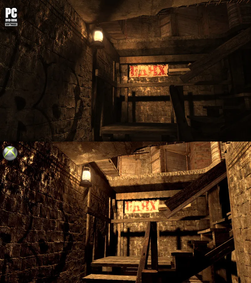 Как видите, из всех скриншотов наиболее сильно разница видна в Metro 2033 – эта игра использует самые современные технологии, которые не доступны на консолях. В остальных играх разница не очень заметна, а порой и вовсе отсутствует.