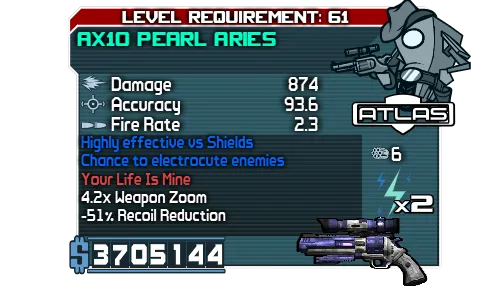 Появилось новою оружие, причём оно настолько редкое, что для его классификации ввели новый цвет (оценивается выше, чем оранжевый) - pearlescent (по-нашему голубой или жемчужный).