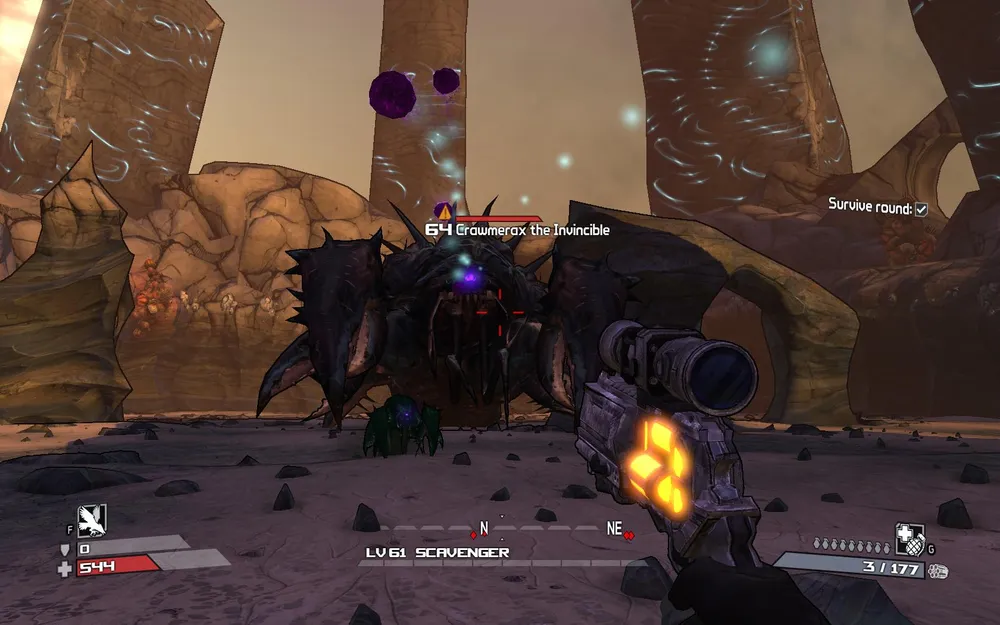 Задание на его убийство появится после прохождения сюжета. Crawmerax - это самый сильный босс в игре, с которым вы можете столкнуться. Его уровень 64! Да, да 64, а если помните, мы сами можем достигнуть лишь 61. Как его убить? А вот это сами решайте. Но это того стоит, перед смертью Краб выплюнет все оружие, которое когда-то съел. Там мы и найдём наше оружие.