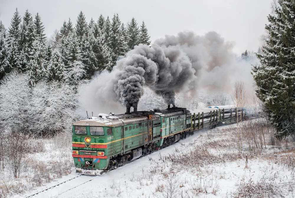 Если вагоны были заполнены железным окатышем (рудный концентрат), то могло быть и четыре локомотива: две секции. Однако позднее появились странные тепловозы, состоящие из трёх частей: первая и третья с кабинами, средняя - "глухая".