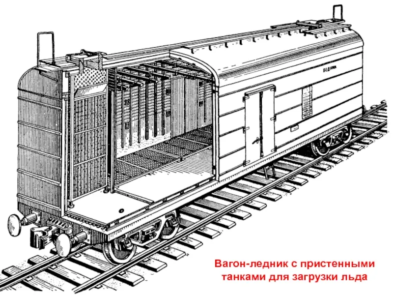 Простите, ничего лучше не нашёл. На переднем плане погрузчик с ковшом, он засыпал наколотый лёд в бункер другого погрузчика, который и загружал лёд в вагоны; его силуэт виден на фоне автопогрузчика.