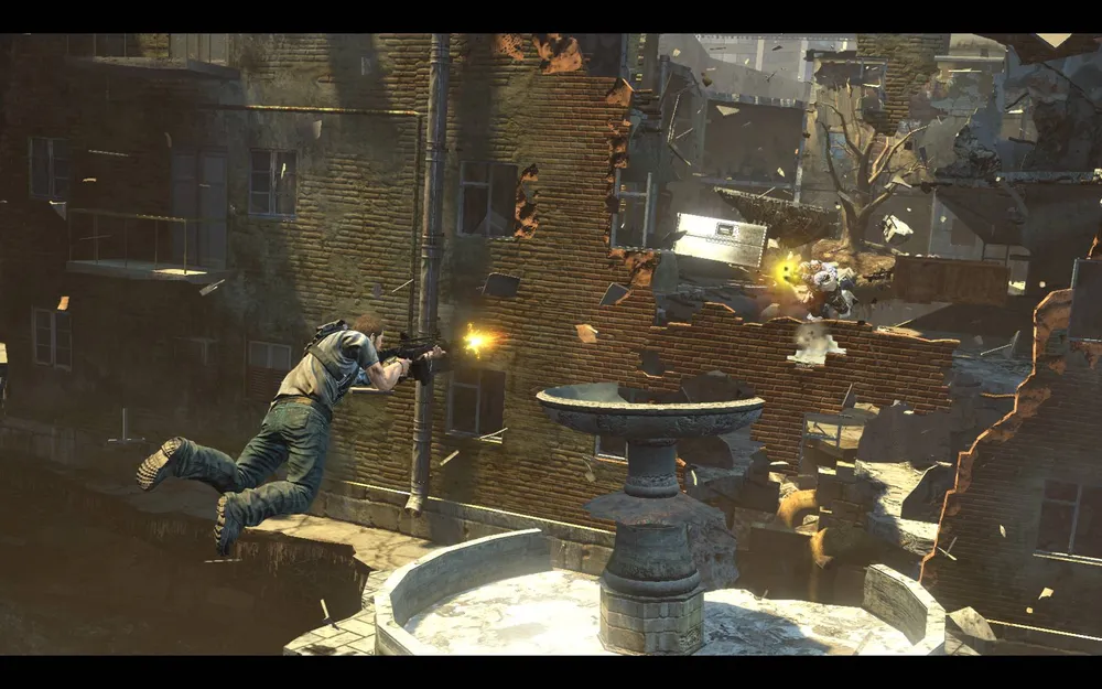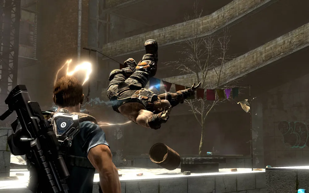 Применять гравлинк приходится очень и очень часто, хотя и из обычного оружия можно пострелять. Враги активно теряют свои инопланетные винтовки, пулеметы и автоматы, которые потом подбираются игроками и используются по назначению. Перестрелок много, взрывов много, впрочем, как и разрушаемости окружающего пространства. В Inversion используется физический движок Havok, позволяющий изрядно повеселиться. Разрушить целый небоскреб нам, конечно, не позволят, но снести какой-нибудь глыбой обзорную вышку или колокольню церкви с окопавшимися там вражескими снайперами можно.