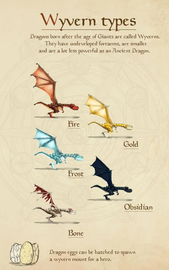 Самые сильные твари для оседлания это — золотая, огненная, льдяная, обсидиановая и костяная виверна и грифон. Как только Вы найдёте яйцо, понадобится несколько ходов, прежде чем оттуда кто-нибудь вылупиться (Вашему герою не нужно быть наседкой). Сильнейшие твари дают бонус — полёт и кругозор (увеличивает радиус видимости). Может, мы что-нибудь ещё добавим.