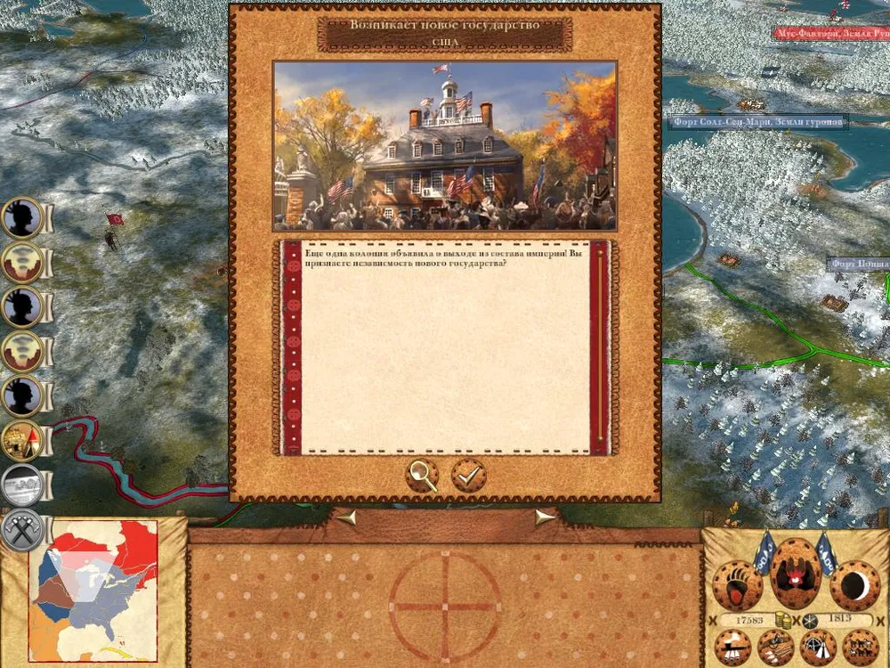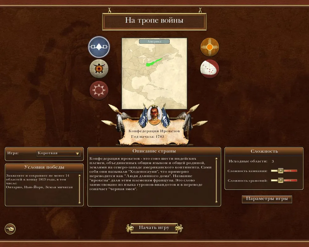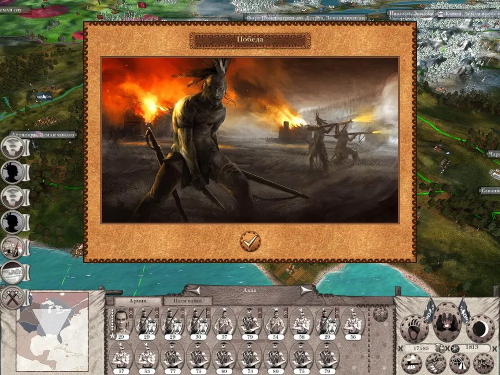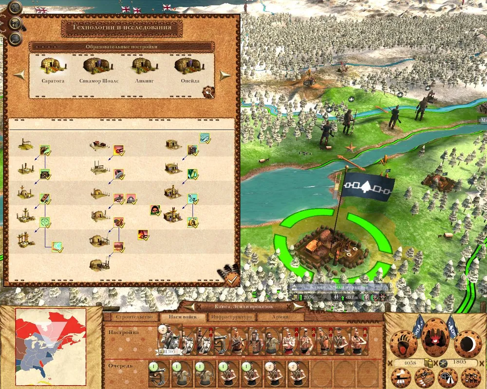 Этого, однако же, надо еще добиться. Краснокожие сильно отстают от Европы в развитии – в технологическом древе у них присутствуют такие передовые вещи, как охота на бизонов и зимняя одежда. Можно ли эффективно бороться с иноземцами, если отпор линейной пехоте вынуждены давать голозадые охотники с томагавками? В экономике, опять же, сплошное горе: как обскакать супостата, если небольшой европейский заводик приносит в сезон больше дохода, чем все деревни гуронов? Они и слова-то такого – «экономика» – не знают. Гуронов это очень огорчает.