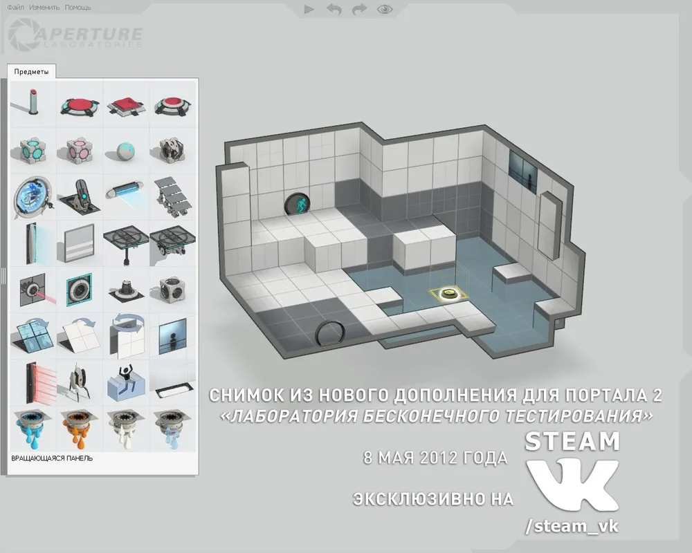 "Perpetual Testing Initiative" включает в себя новый внутриигровой упрощенный редактор карт. Можно создавать свои карты, делиться ими и публиковать в Steam Workshop.