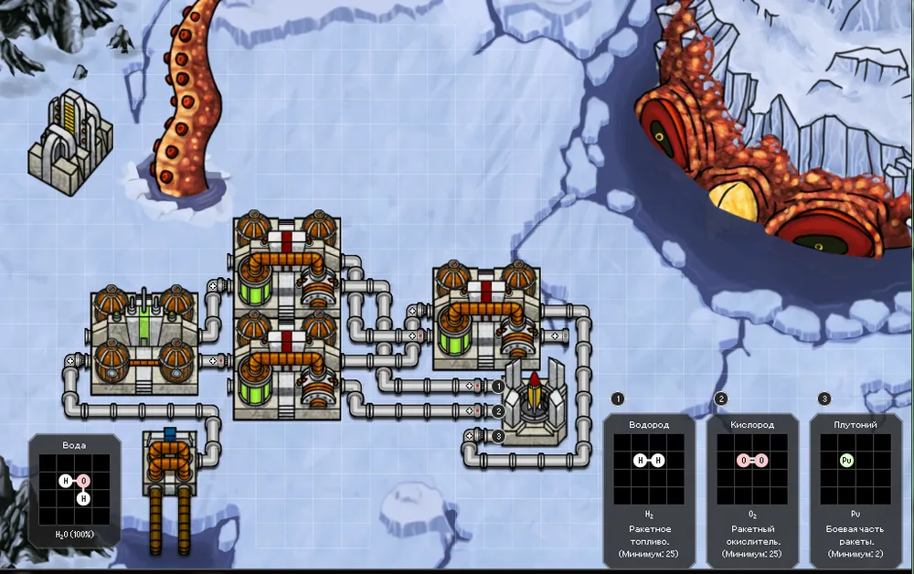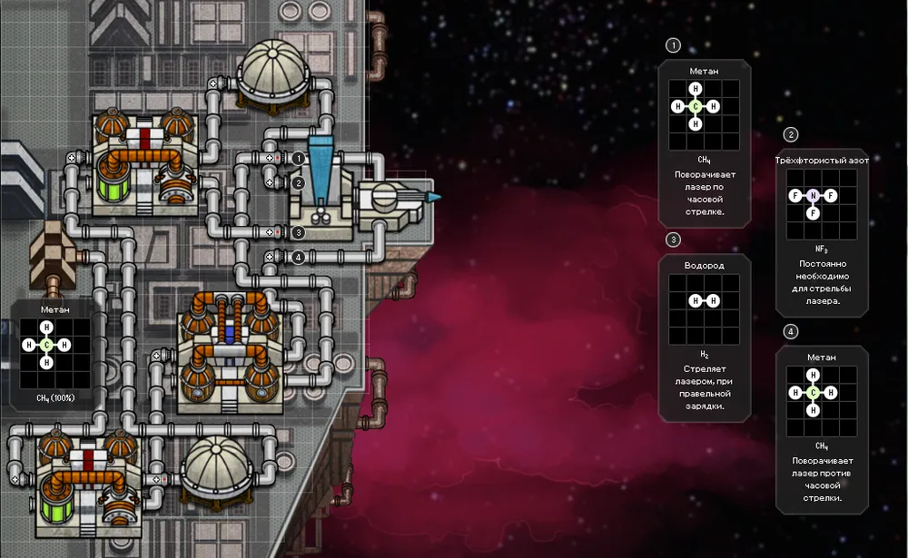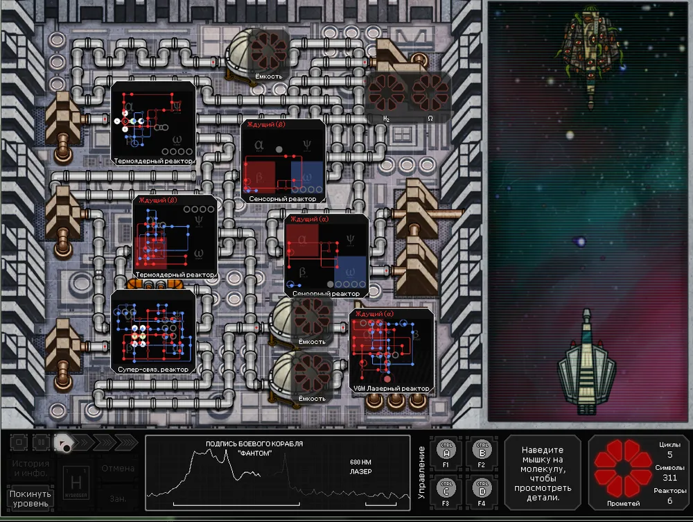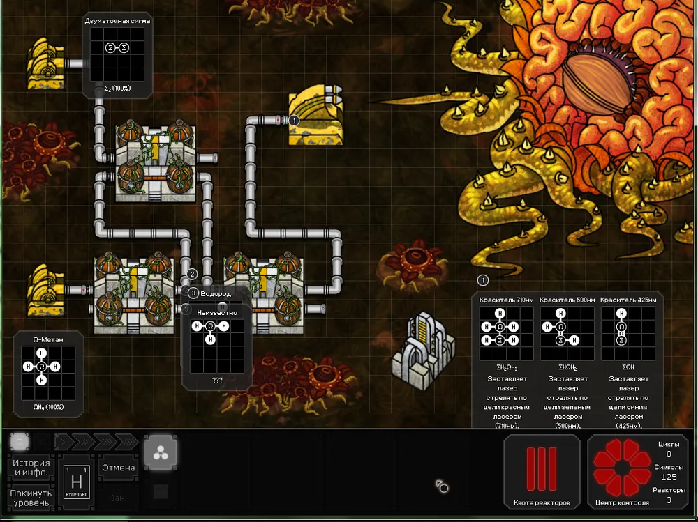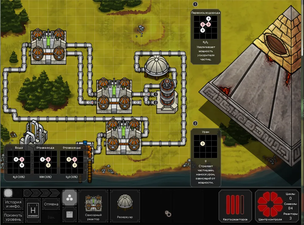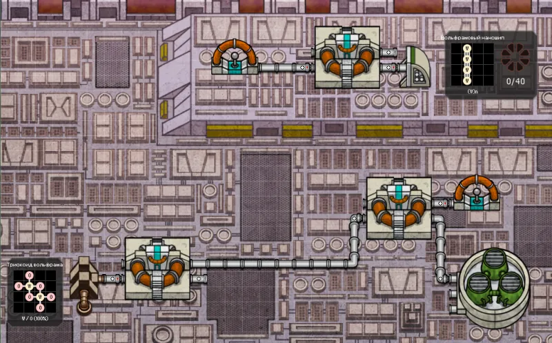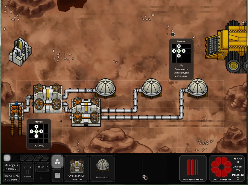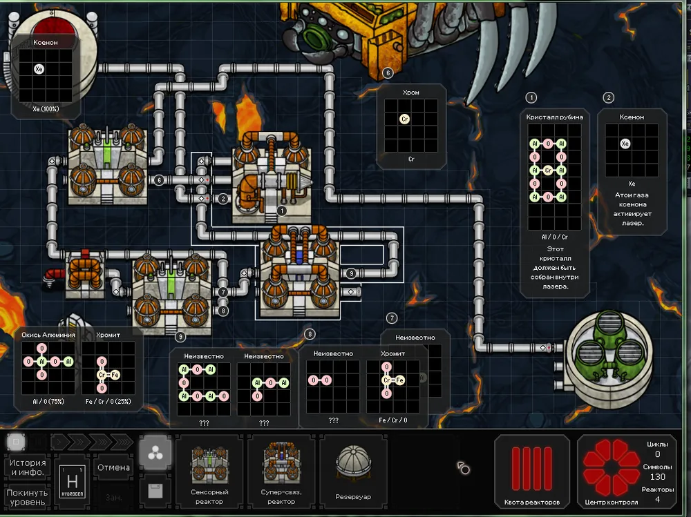 Герою приходится в одиночку настраивать довольно сложные техпроцессы. Здесь нам не приходится заниматься трубопроводами, они уже жестко установлены на реакторах.