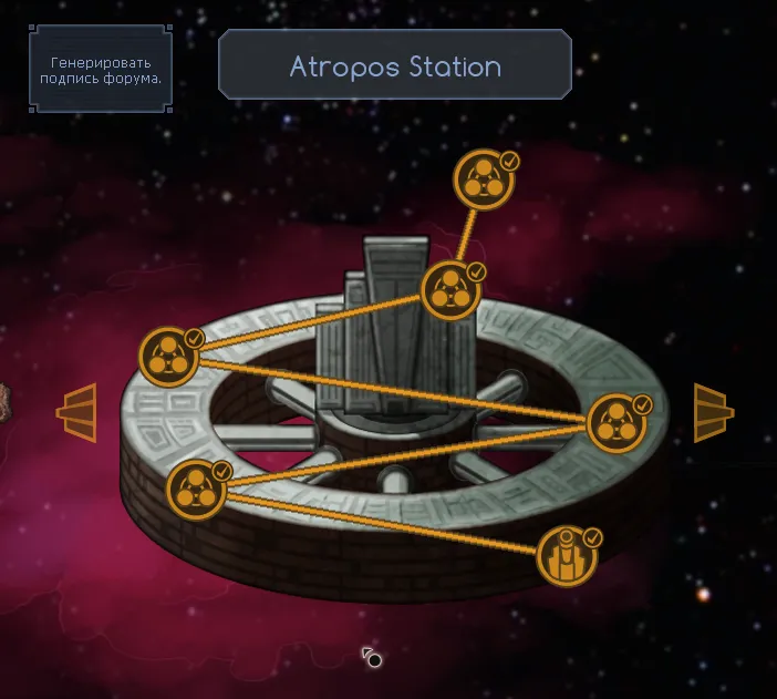 Седьмая локация игры. Научно-исследовательская станция "Атропос", находящаяся в открытом глубоком космосе, представляет собой большую круглую металлическую конструкцию в форме тора и была построена несколькими десятилетиями ранее во время исследовательского бума КосмоХима.