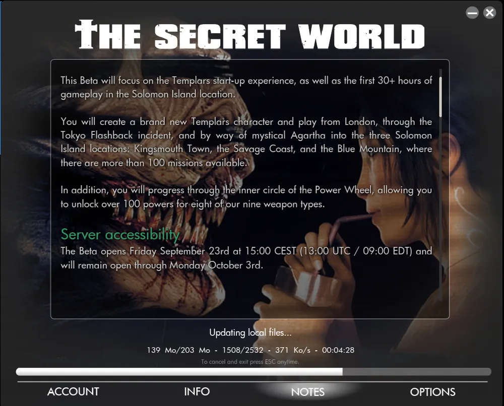 Началась первая стадия ЗБТ The Secret World, которая продлится до 3-ого октября. В первой стадии закрытого бета теста игры можно играть только за персонажей из Ордена Тамплиеров.