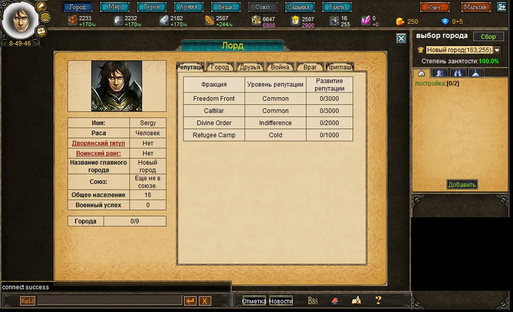 Ну вот собственно прошла наша регистрация, мы заходим в игру и видим... Замок, который надо быстренько обустраивать, строить героя, и при каждом действии выполнять какой-то квест... А у каждого квеста ещё и описание есть. Ну, собственно новичкам то тоже разбираться надо, хотя в игре ничего сложного нету. И уже тут встречаешься с кучей вопросов.