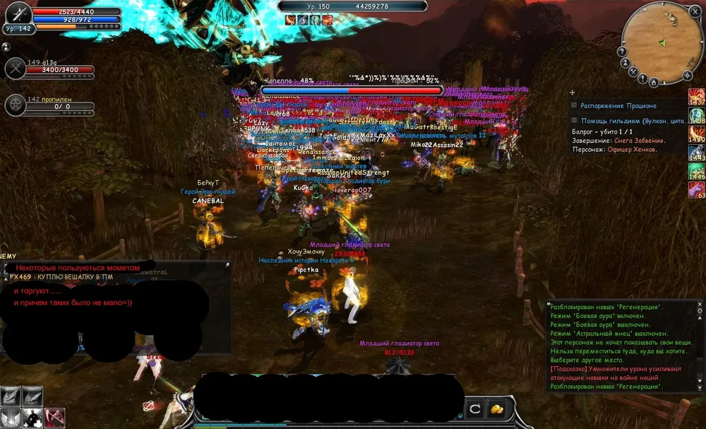 Остальная часть людей, которая не умирала в лагах, била мобов.