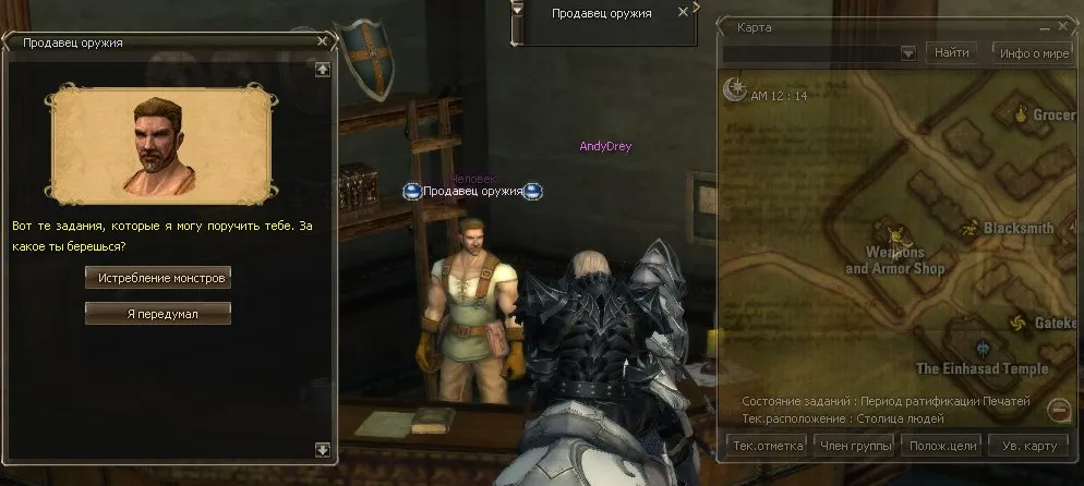 К этому моменту вы уже должны убить 300 мобов и можете идти сдавать квест торговцам оружия и ювелирных изделий.