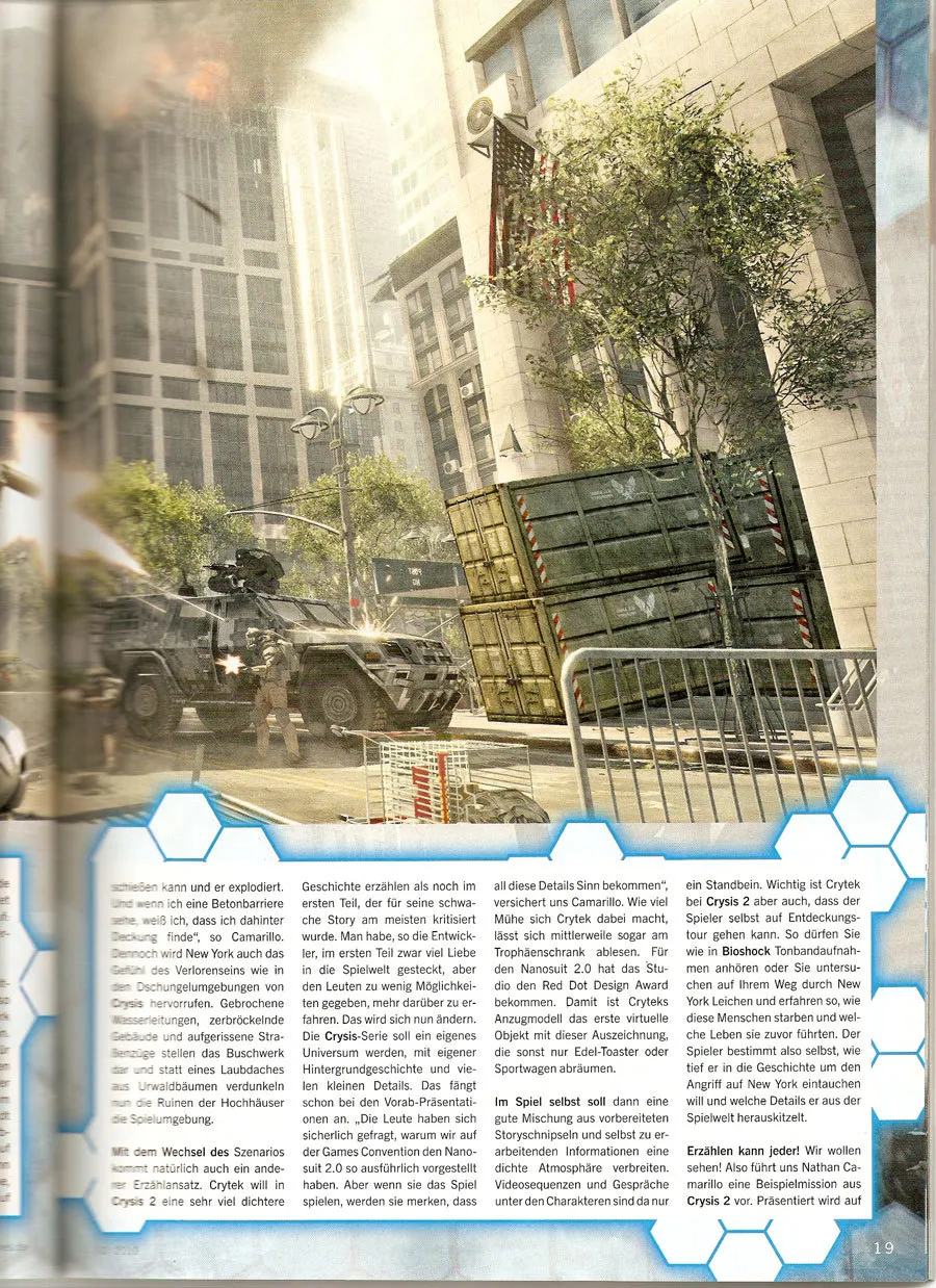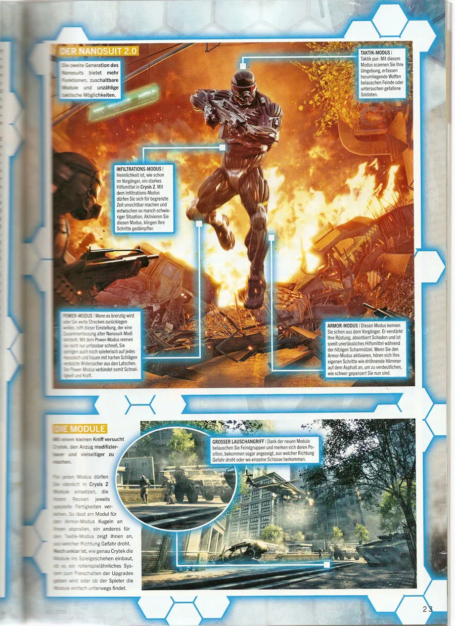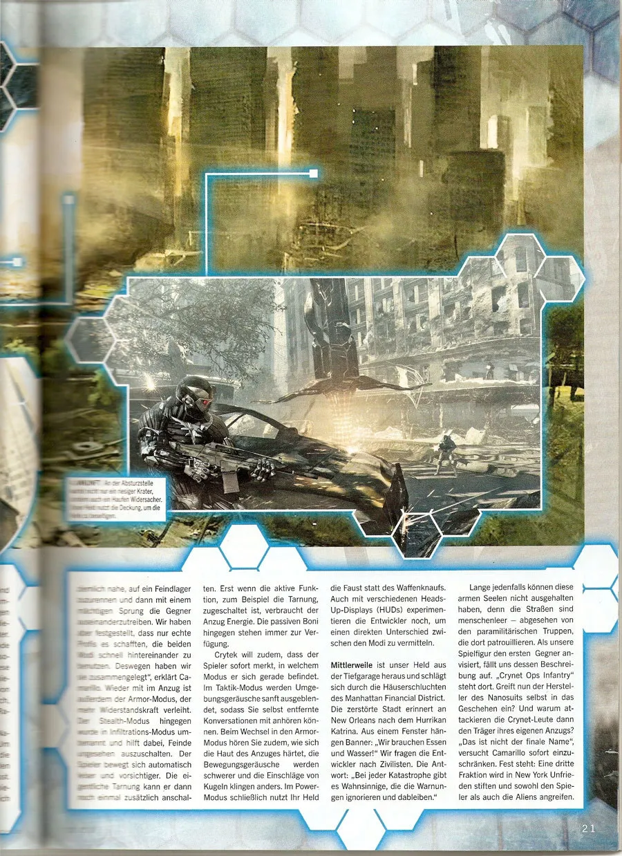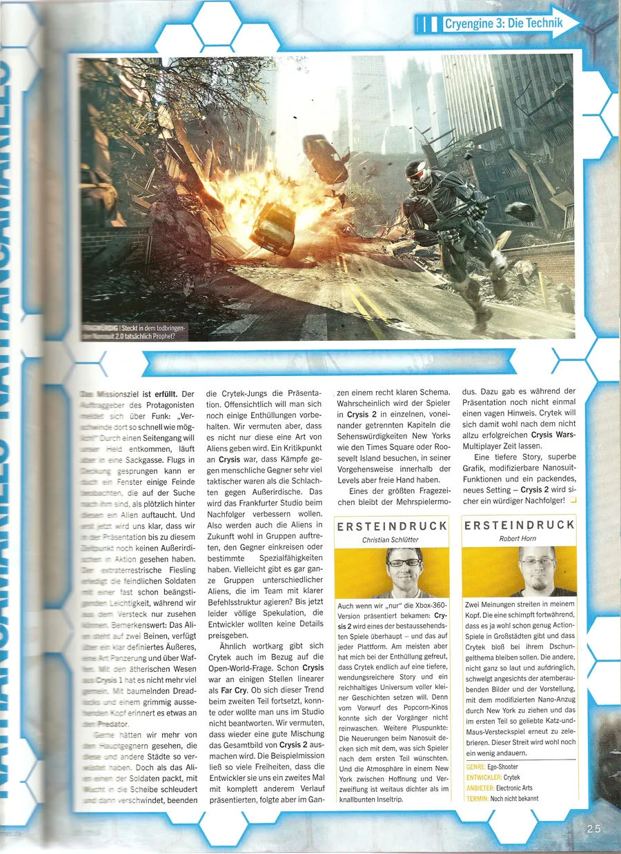 В сети появились сканы Crysis 2 из февральского номера немецкого журнала PC Games. Если вы знаете немецкий язык, то сможете узнать много нового об игре. Crysis 2 разрабатывается для ПК, PS3 и Xbox360. Дата выхода неизвестна.
