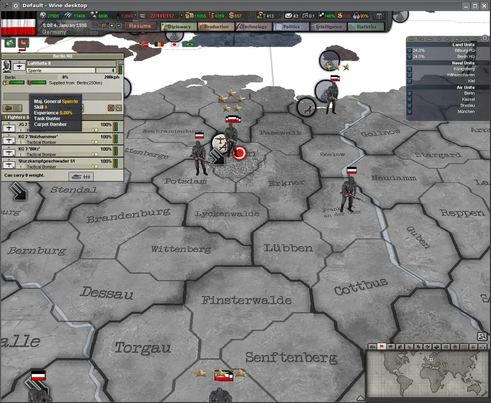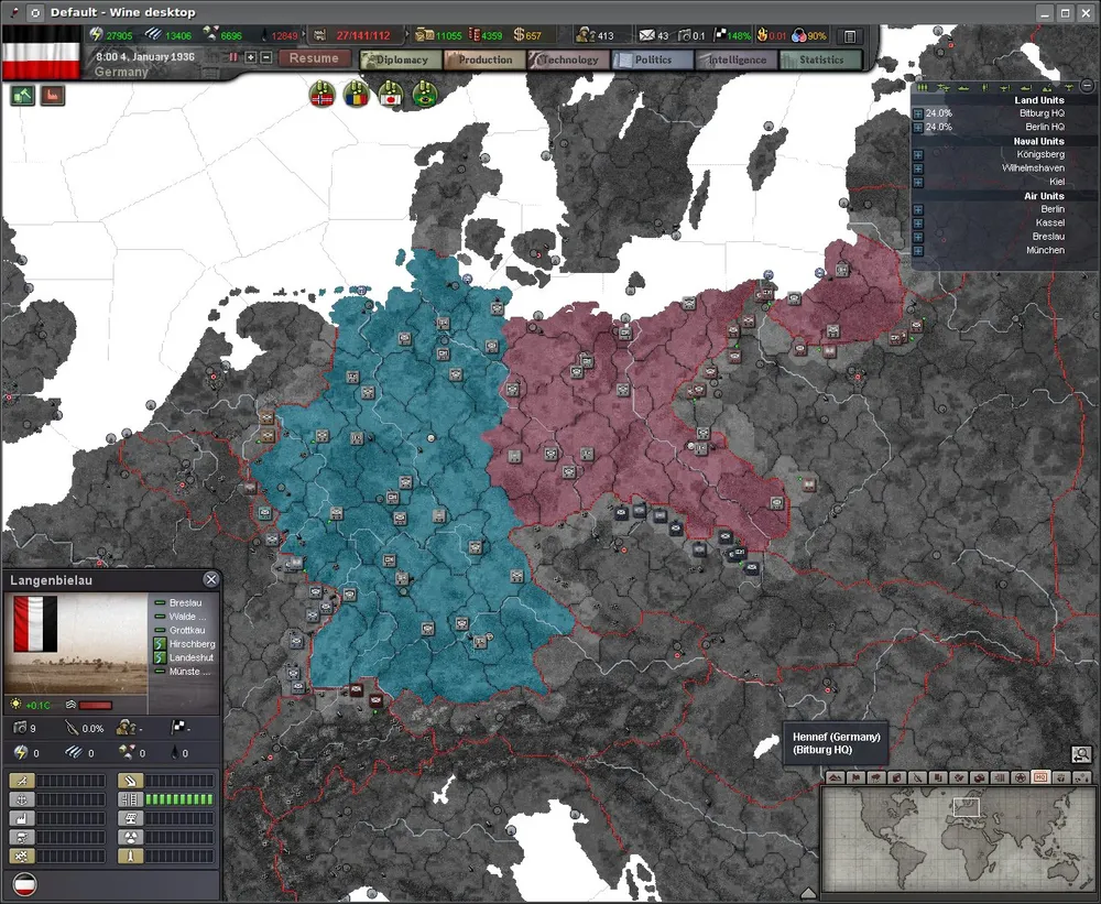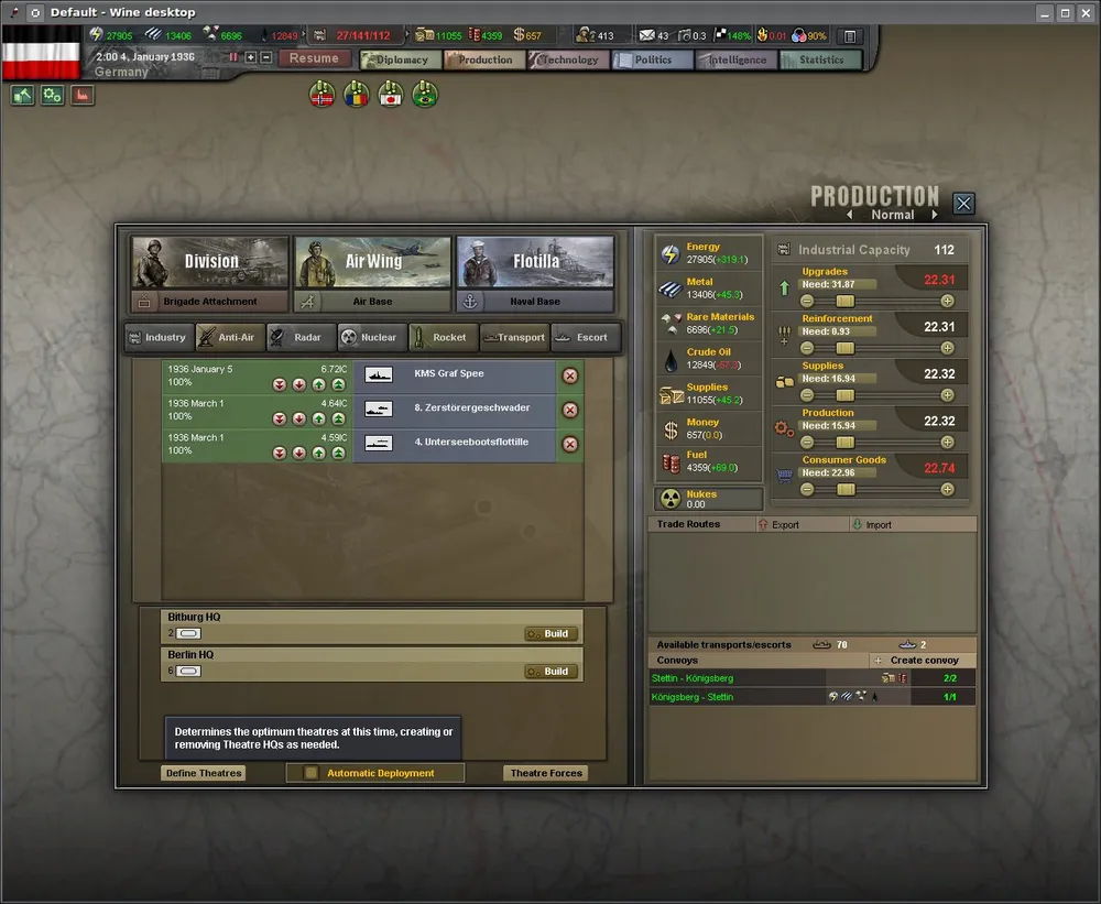 Видите вверху справа две строчки - "Bitburg HQ" и "Berlin HQ"? Это означает, что на разных фронтах подразделения подчиняются соответствующим территориальным штабам. Как известно, во Вторую Мировую все серьёзные державы воевали как минимум на два фронта, так что концепцию ТВД я всецело одобряю.