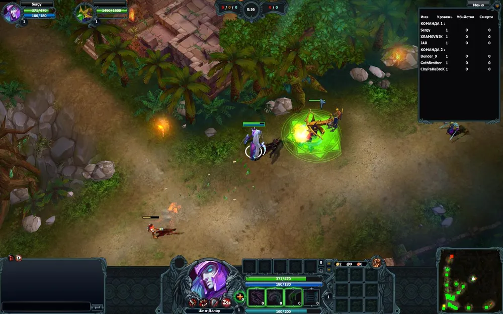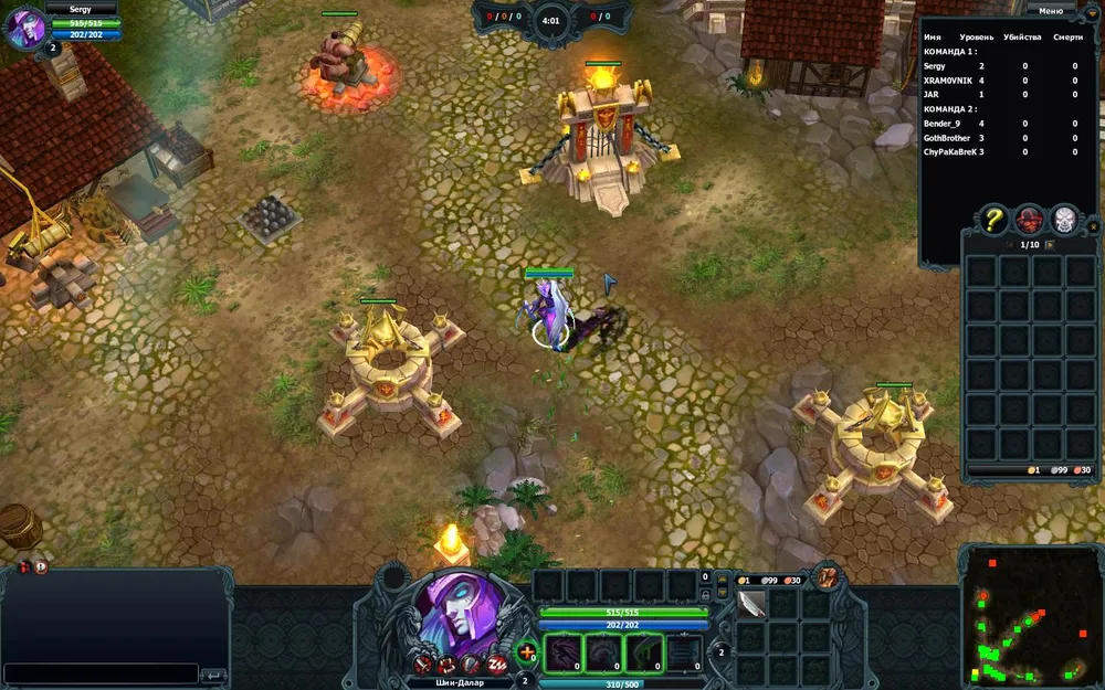 Ещё есть казармы, из них выбегают мобы и тупо бегут вперёд. Если впереди попадёться дерево - мобы могут застрять. Если рядом будет враг - мобы могут напасть. Или пробежать мимо - всё зависит от вашей удачи. Нам надо просто управлять героем, бить чужих мобов, и добивать героев. Лучше вместе. Хотя я вон в последний раз играл двое на четверо, весело было, да.