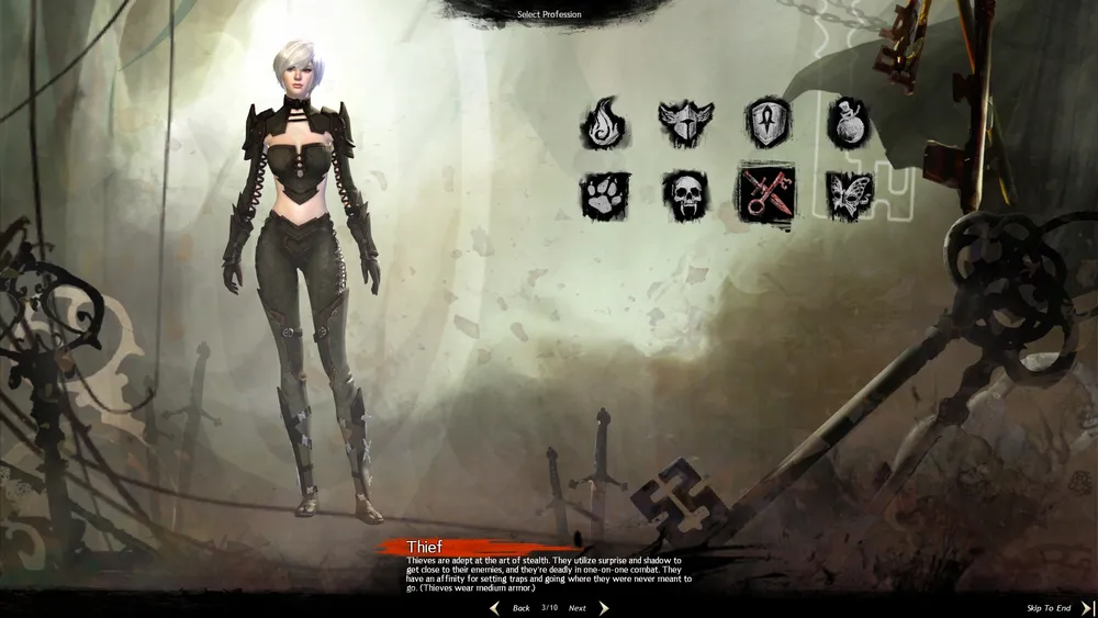 • Thief – разбойник в прямом смысле этого слова. Носит мечи, даггеры, пистолеты и короткий лук. Жаль, правда, что Stealth у него не такой, как мы все привыкли, длительностью всего секунд в 5, не более.