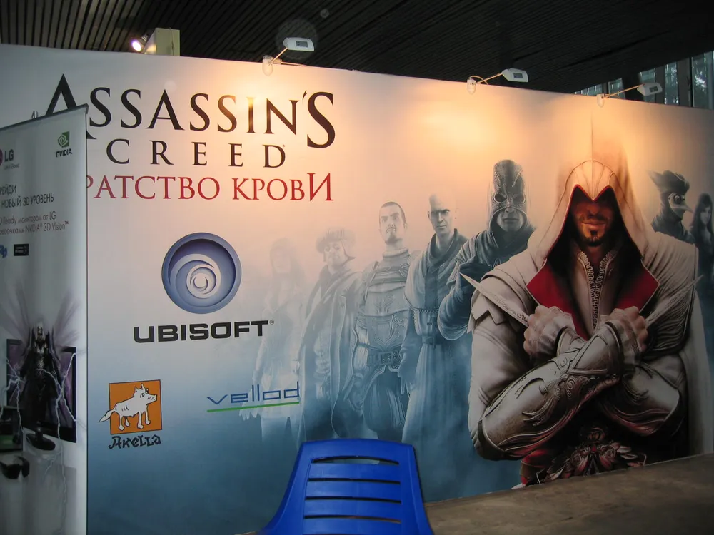 Gamer.ru и Gamer Ring! Сев на правую от плазмы(с противоположной стороны от машины), мы заняли ближайшие к сцене места, понабрали всего, что раздавали три красавицы со сцены, прошли настольную игру Gamera, добравшись до щита, и стали ожидать битвы. К сожалению бой задержали на несколько минут, что привело мой старенький Canon к плачевному уровню зарядки, но дождавшись боев мы стали ими наслаждаться.