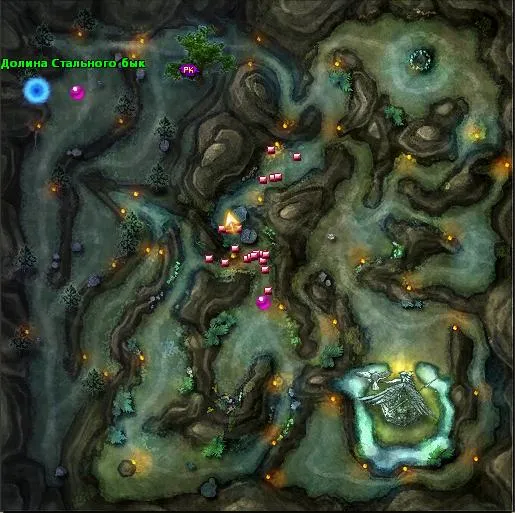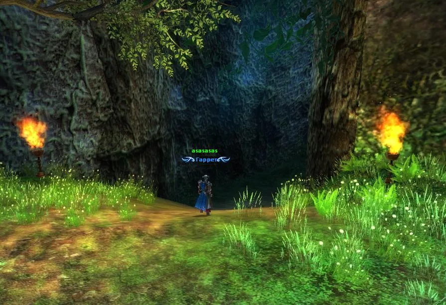 На первый взгляд местность выглядит вполне обычной - ущелья и скалы. Но один из гротов освещен факелами. Туда нам и нужно.