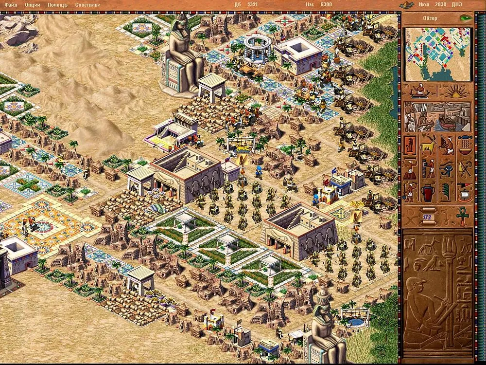 Дворец. Здание, заведующее финансовыми и военными делами, а также служащее местом отдыха для фараона. Позволяет строить налоговые управления и собирать военные отряды. Уровень поселения определяет ранг дворца (обычный, большой, роскошный). Во дворце хранится городская казна. В городе может быть только один дворец.